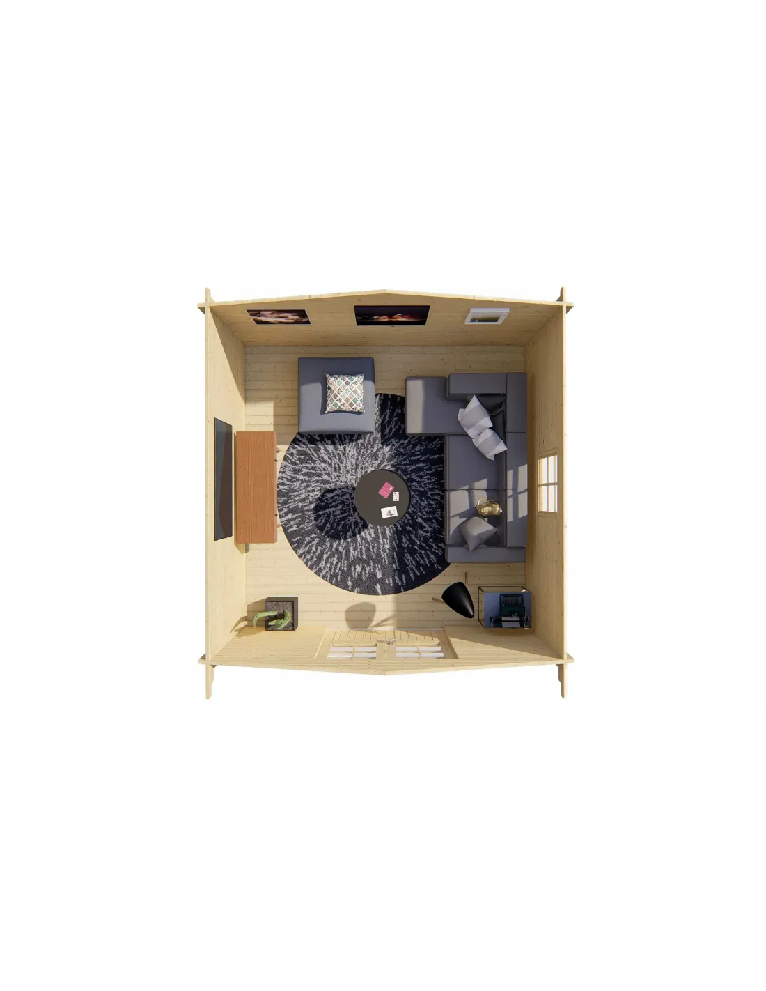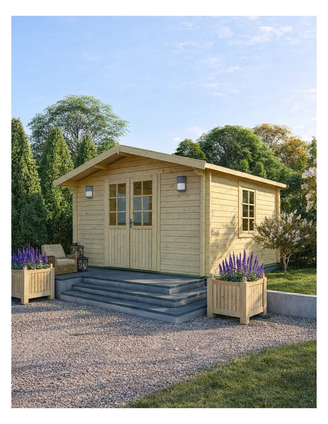Ontworpen voor maximaal comfort en lichtinval, beschikt dit houten tuinhuis over: