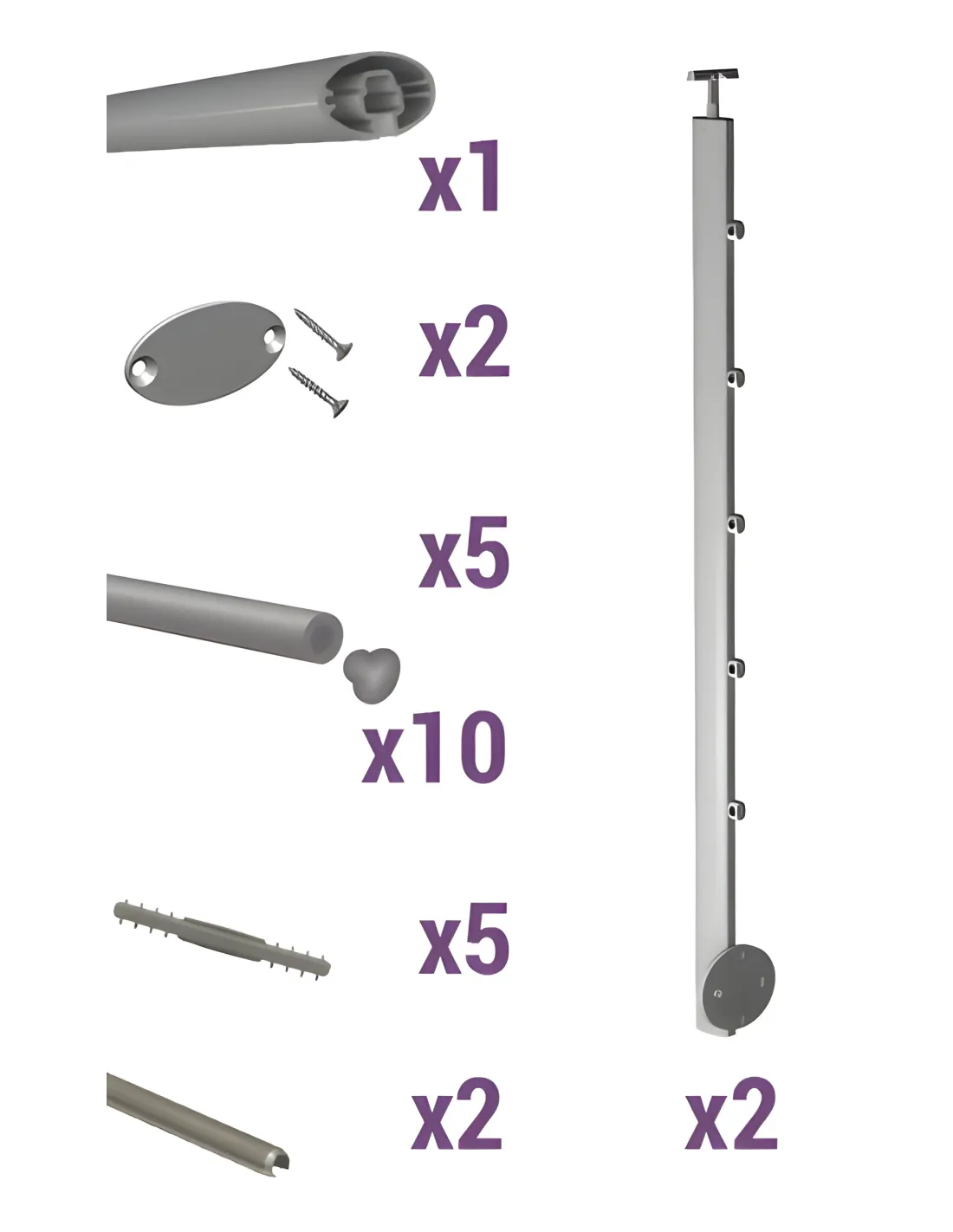 Kies voor een aluminium balustrade die u gemakkelijk zelf kunt installeren dankzij een ultrasnel montagesysteem zonder boren. Deze complete aluminium balustradeset van 2 meter, vervaardigd in Frankrijk, is ideaal om uw ruimtes eenvoudig te beveiligen, zowel met zijmontage, op een vlakke ondergrond als op een trapleuning.