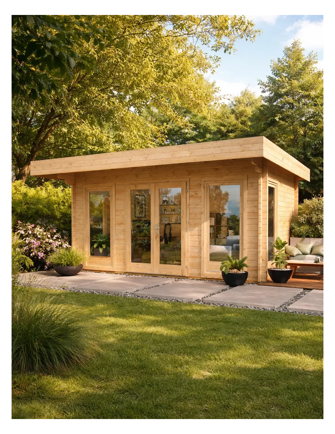 Dit tuinhuisje is perfect om een onafhankelijke ruimte te creëren in uw eigendom: gastenverblijf, atelier, tuinstudio of werkplek thuis.