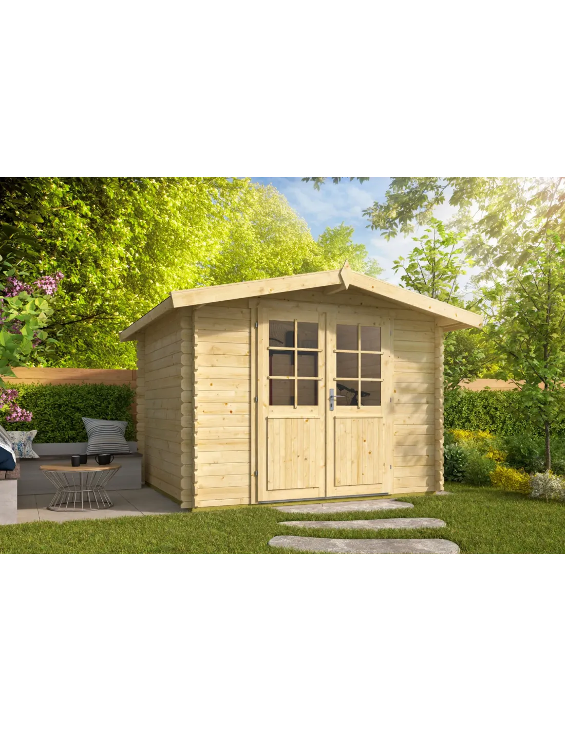 Gemaakt van onbewerkt, gedroogd en geschaafd sparrenhout, garandeert dit tuinhuis een stevige en duurzame structuur. De 28 mm dikke wanden zorgen voor een goede stabiliteit en zijn geschikt voor dagelijks gebruik.