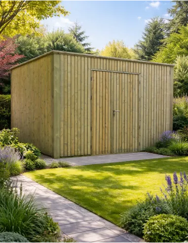 Dit model is gemaakt van Noord-Europees Rood Noordenhout, een houtsoort die bekend staat om zijn stevigheid. Voor een lange levensduur zonder tijdrovend onderhoud is het hout behandeld met een groen autoclave-impregnatie van klasse 4 (C4). Hierdoor is het perfect beschermd tegen weersomstandigheden, vocht en insectenaantasting. Bovendien wordt deze berging geleverd met een zeer duurzaam EPDM-dak voor waterdichtheid en een geïntegreerde regenwatergoot voor het efficiënt afvoeren van regenwater.