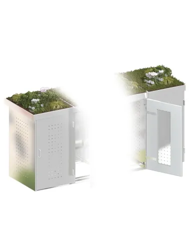 Afdekdeksel voor prullenbak in de vorm van een bak van roestvrij staal voor het plaatsen van planten.