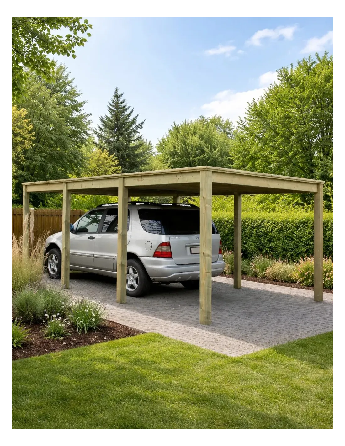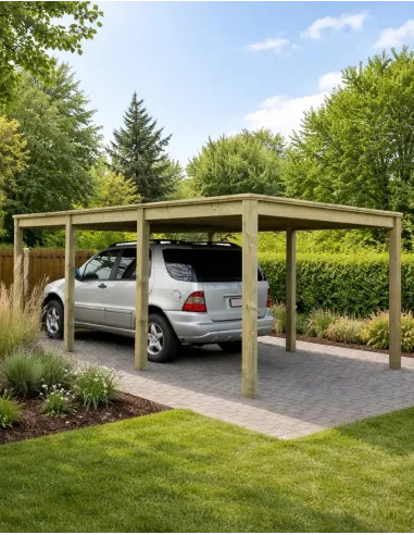 Bent u op zoek naar een praktische en esthetische oplossing als alternatief voor een gesloten garage? Kies voor onze open houten carport, speciaal ontworpen om uw auto effectief te beschermen tegen weersomstandigheden (regen, hagel, sneeuw, UV-stralen) en tegelijkertijd een uitstekende luchtcirculatie te bevorderen.