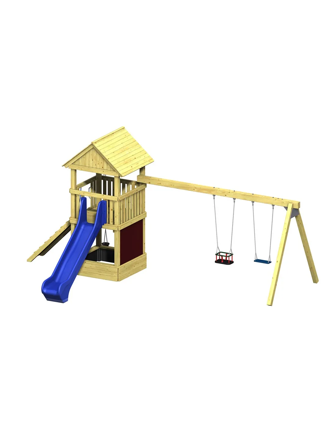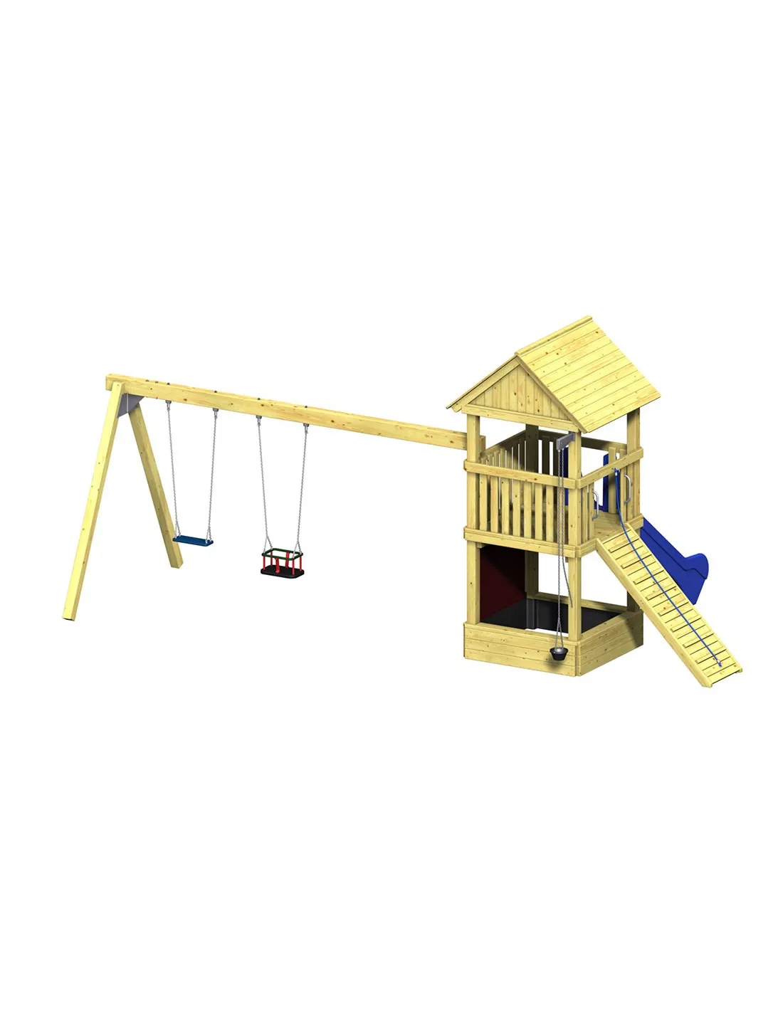 De openbare kinderspeelplaats nr. 4 is een compleet pakket met een keuze aan uitbreidingen. Het omvat: