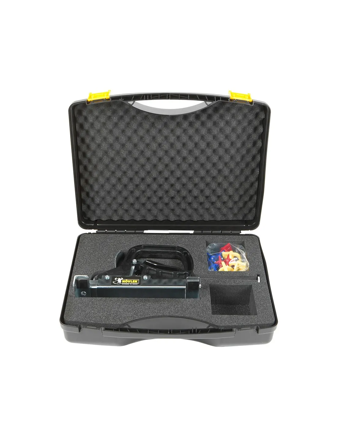 Dankzij de ergonomische greep zijn de spanveer en de ontgrendelingshendel snel en makkelijk bereikbaar. Door zijn compacte formaat en de afwezigheid van een roterende hendelarm kan dit werktuig in de meeste situaties worden gebruikt, zelfs in smalle ruimtes of vlak bij een muur. U kunt hiermee tot en met de laatste plank rechttrekken of aanspannen, zonder op een draagbalk te moeten steunen. De plankenspanner is aangepast voor gebruik met de meeste plankbreedtes. Door gebruik te maken van een steunblok (niet meegeleverd), wordt hij nog flexibeler en geschikt voor het leggen van planken met een kleine breedte. Hij kan worden gebruikt voor het plaatsen van zowel terrassen als horizontale of verticale gevelbekledingen. De plankenspanner van NÖVLEK® kan zelfs worden gebruikt om de kantplanken op hun plaats te houden vóór ze vastgemaakt worden.