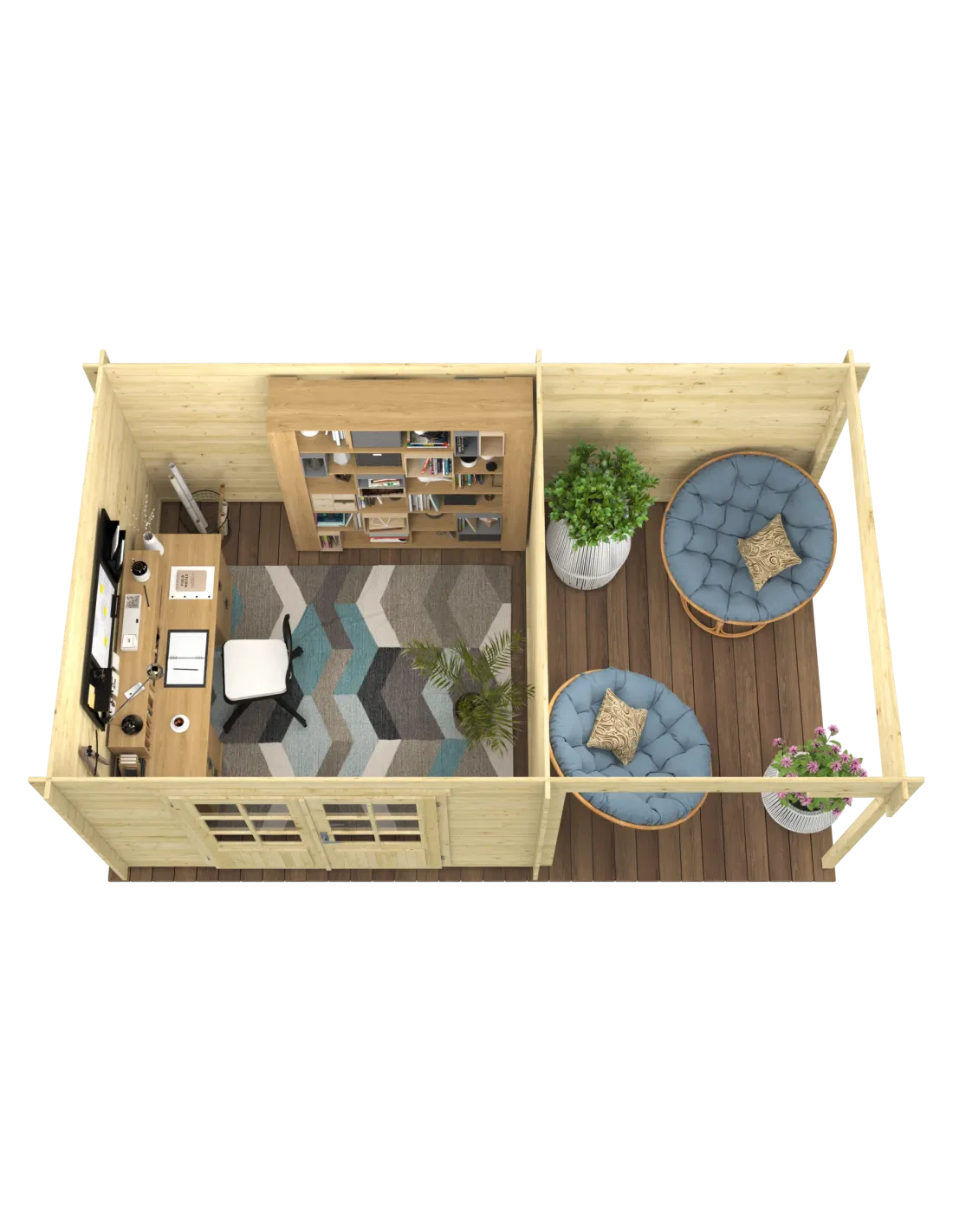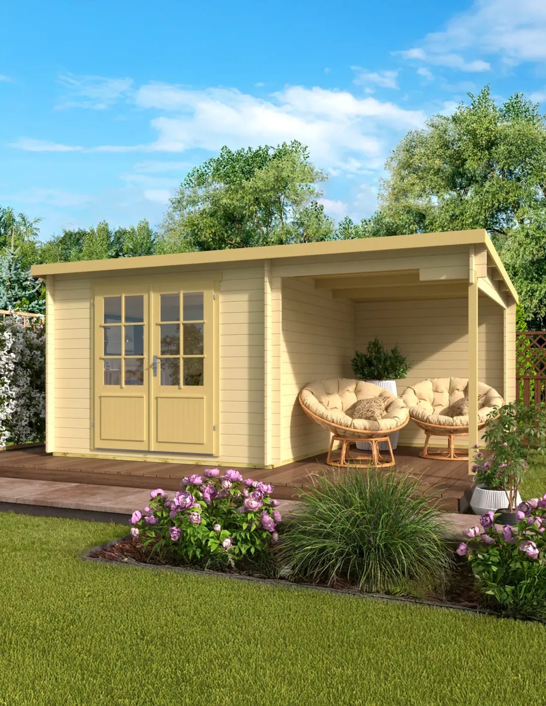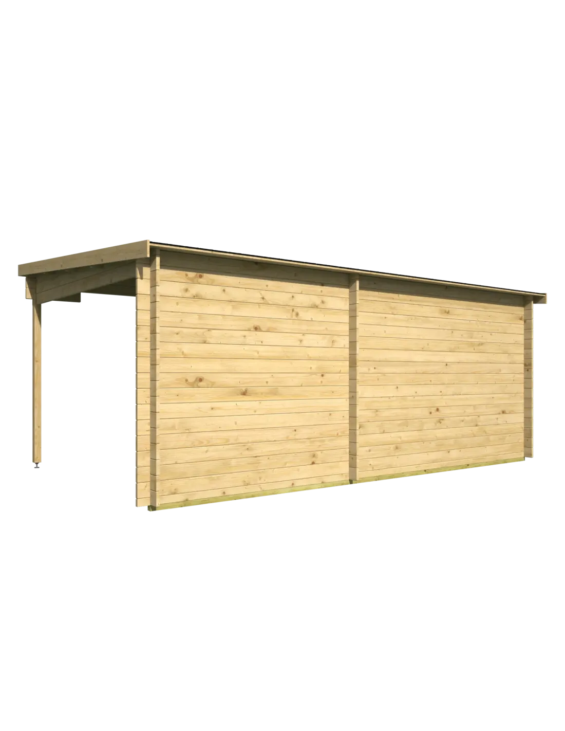 Houten tuinhuis met plat dak en zijluifel – 12,9 m²: