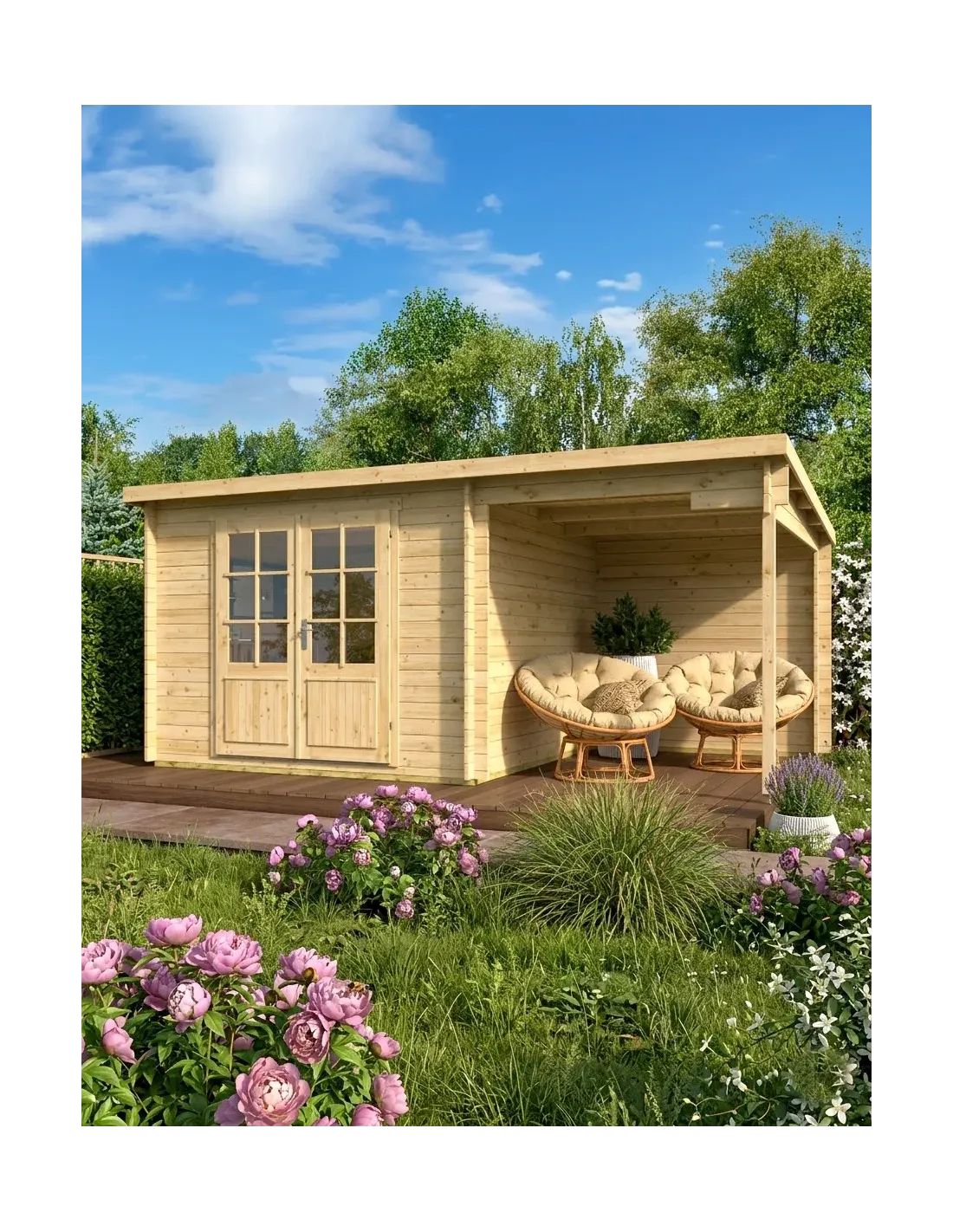 Transformeer uw buitenruimte met dit tuinhuis met een eigentijds design. Dit tuinhuis van wit sparrenhout, dat natuurlijke esthetiek en functionaliteit combineert, is de ideale oplossing voor wie op zoek is naar zowel een veilige opslagruimte als een schaduwrijke ontspanningshoek.