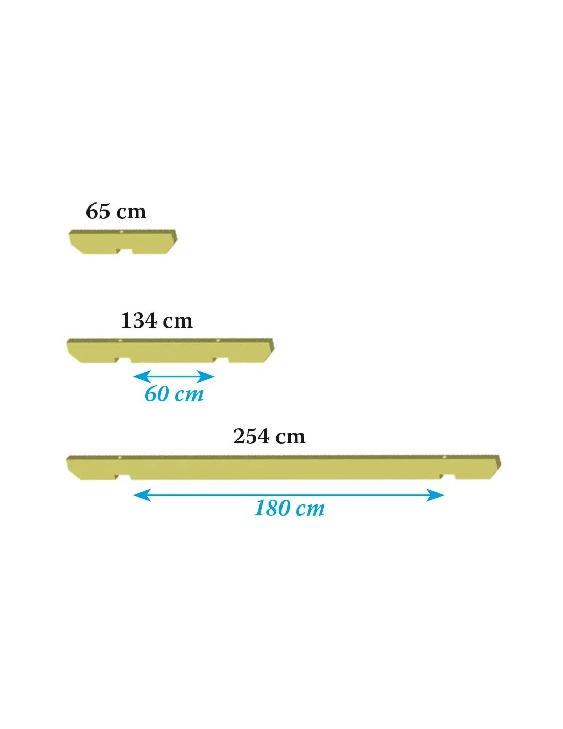 Beschikbaar in 3 lengtes: 65 cm, 134 cm of 254 cm.