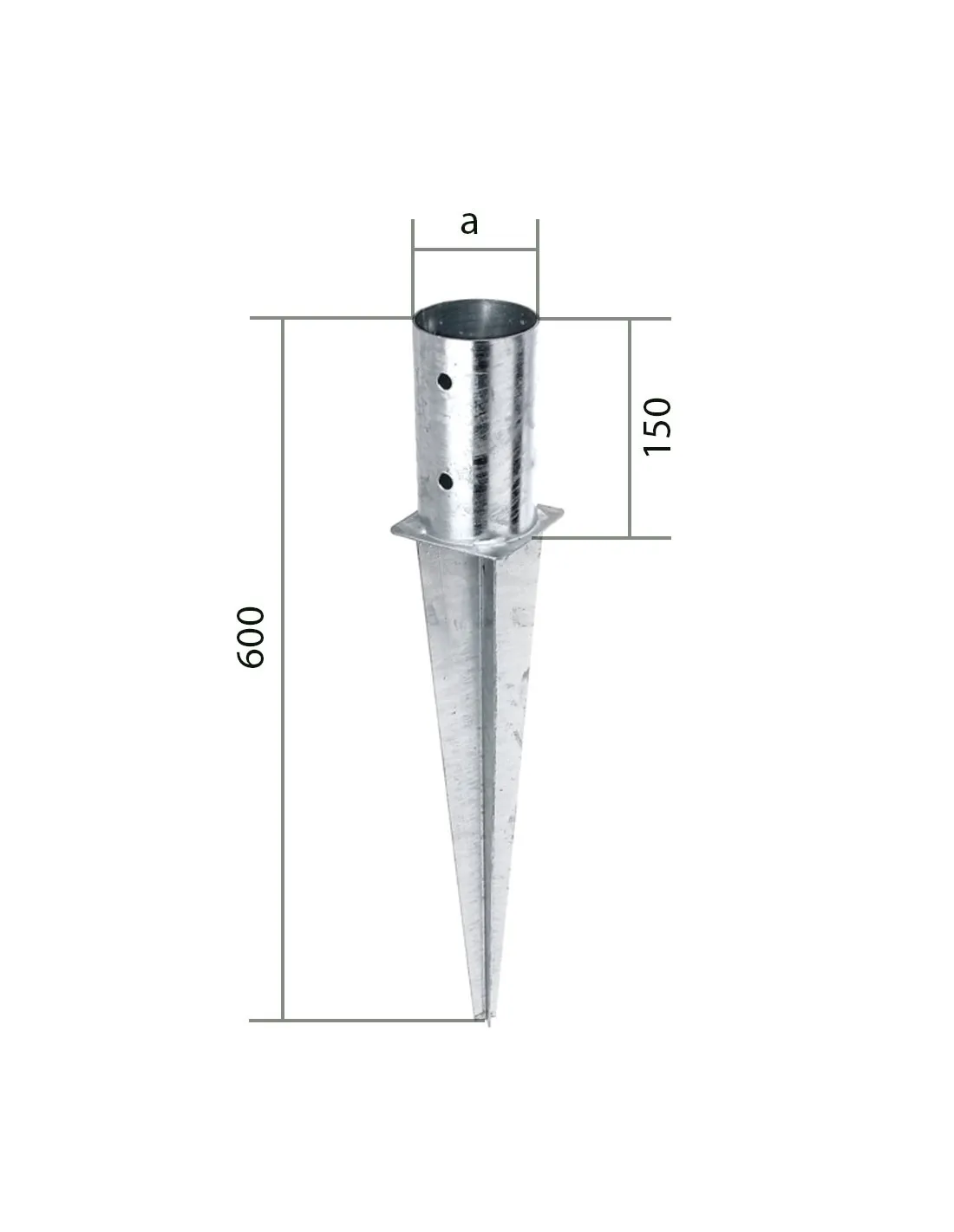 IJzeren punt om ronde palen in de grond te bevestigen.