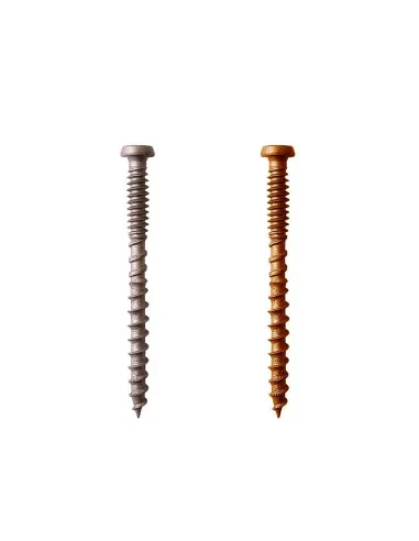 De afmetingen van de terrasvloerschroeven voor composiet planken zijn 5 x 50 mm. Ze worden geleverd in een verpakking van 150 stuks, inclusief een schroefbit.