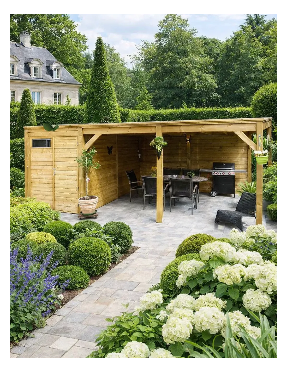 Gemaakt van Noord-Europees Rood Noordenhout, profiteert deze tuinberging van een behandeling met groene autoclave-impregnatie van klasse 4 (C4!). Dit proces zorgt voor een uitzonderlijke weerstand tegen weersinvloeden, insecten en schimmels, waardoor de levensduur maximaal en onderhoud nauwelijks nodig is. De berging wordt geleverd met een hoogwaardige EPDM-folie voor perfecte waterdichtheid, en een dakgoot om regenwater efficiënt af te voeren.