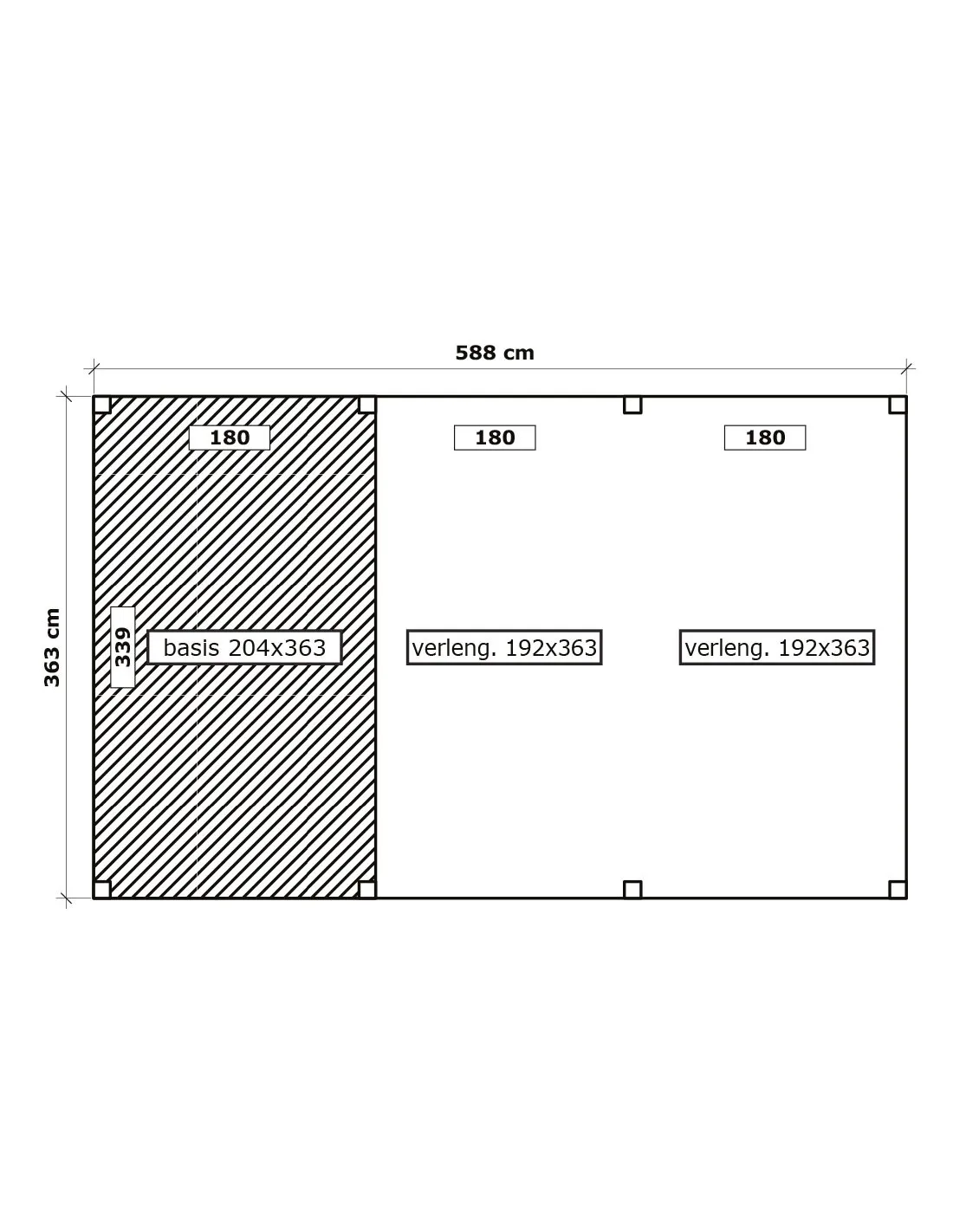 Totale afmetingen: 588 x 363 cm (Breedte: 5,88 m / Diepte: 3,63 m)