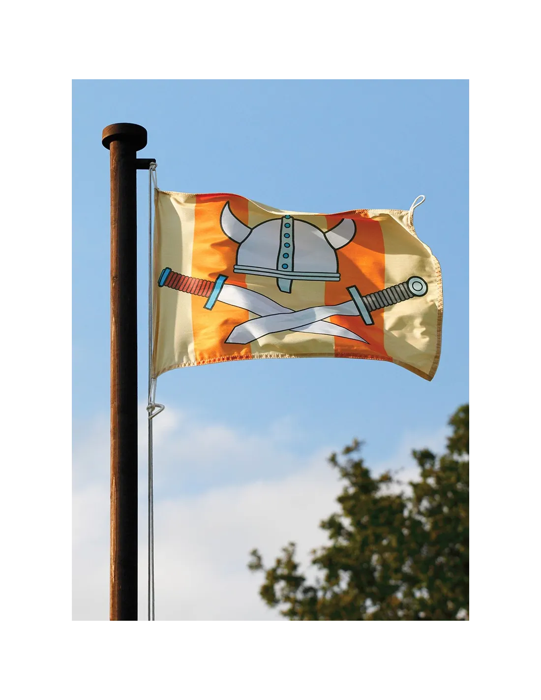 De schommelvlaggenset is gemaakt van polyester stof om goed te blijven drijven in de wind. Het biedt twee geweldige ontwerpen: eenhoorn en kasteel of wiking en piraat.