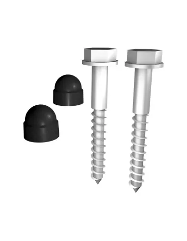 Het wordt geleverd met afwerkingsdopjes. Het pakket bevat 4 houtdraadbouten en stelt u in staat uw palen te bevestigen in het kader van een installatie op houten vloer.