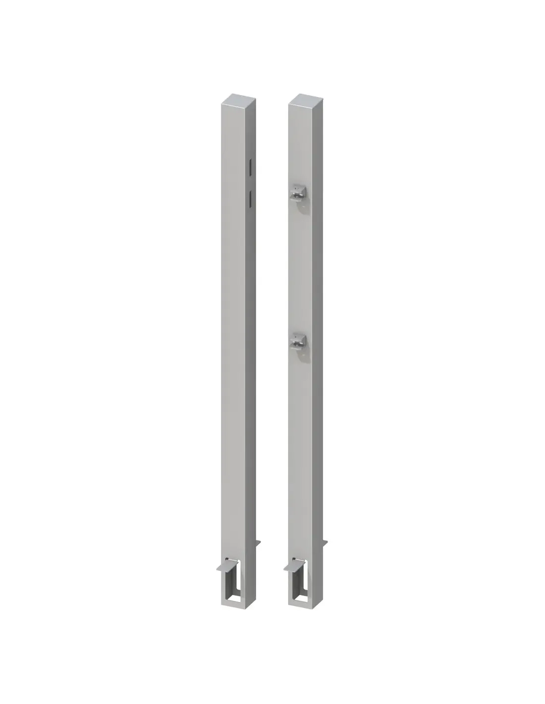 Een van de palen is uitgerust met twee scharnieren voor het bevestigen van de oogschroeven, wat de montage van de tuinpoort vergemakkelijkt. De andere paal is voorzien van een nauwkeurige uitsnede voor het plaatsen van zowel de dagschoot als de nachtschoot, voor een effectieve vergrendeling.