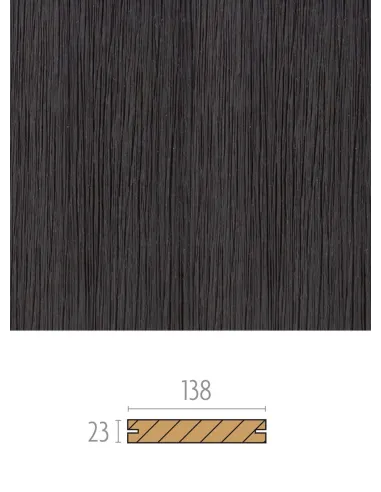 Vintage samengesteld hout latten hebben twee zijden; één licht gestructureerd door vezelige lijnen en in de houtrichting; de andere kant imiteert een beetje de structuur van een klassiek en natuurlijk hout. De planken moeten worden bevestigd met Xian-clips. De planken meten 23 x 138 mm over een lengte van 3 en 4 meter. Ze zijn verkrijgbaar in twee kleuren: zwart en Teck.