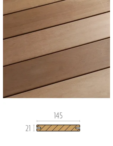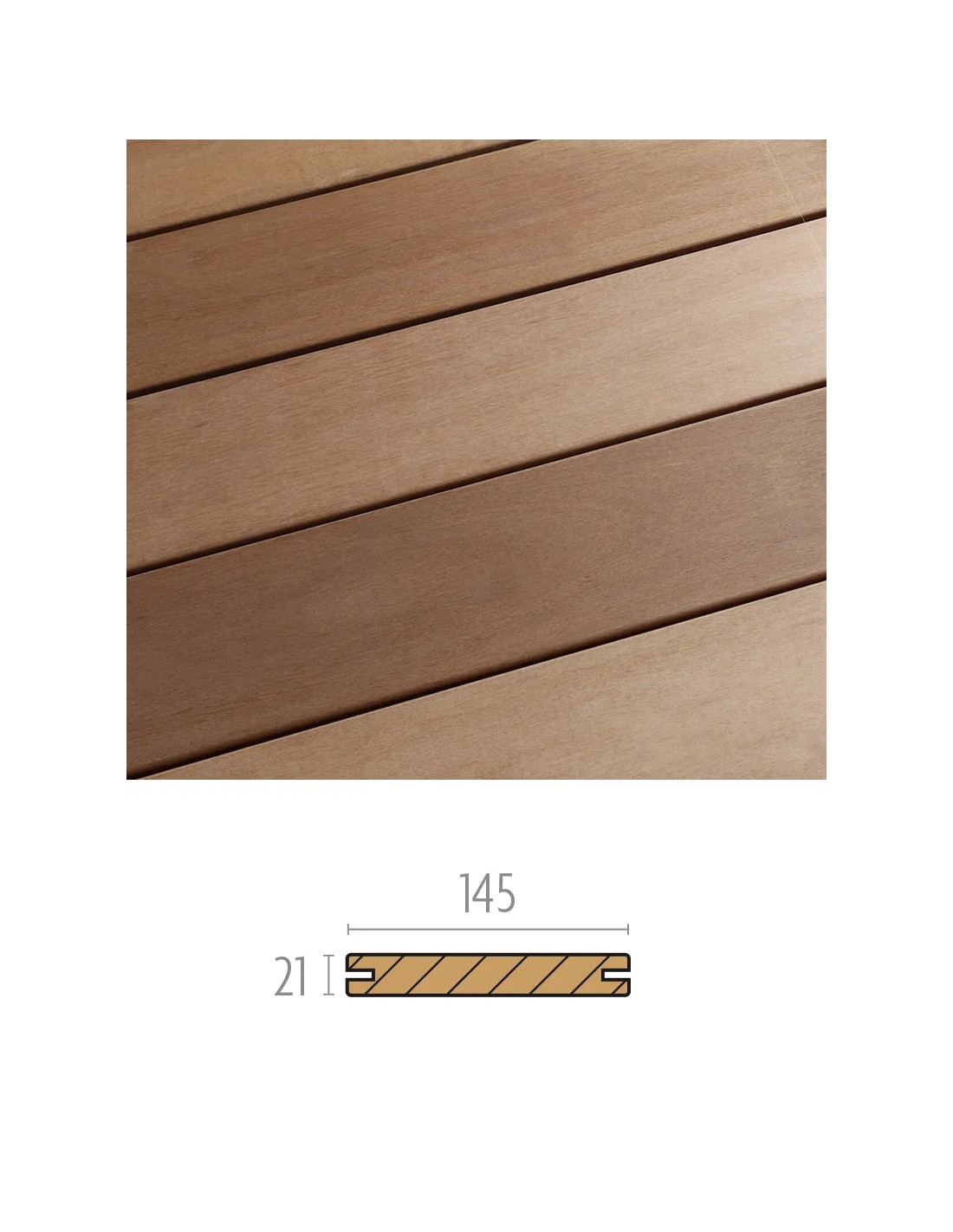 Dit middelzware, gemakkelijk te gebruiken kernhout wordt gebruikt in vele buitentoepassingen. Bijvoorbeeld tuinmeubelen, gevelbekleding (vervanger van Western Red Cedar), constructies zoals vlonders, parkbanken en grondkeringen. Het wordt ook gebruikt voor lijstwerk, raamkozijnen en deuren. Vooral in de tuinhoutsector is het een zeer goed substituut voor Bangkirai.
