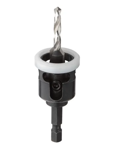 Gereedschap voor het uitvoeren van een voorboorgat én frezen in één handeling, om de schroefkop netjes te plaatsen. De dieptestopper is verstelbaar en de kunststof ring voorkomt beschadiging van de terrasplanken. Dit systeem garandeert een constante boor- en freesdiepte.