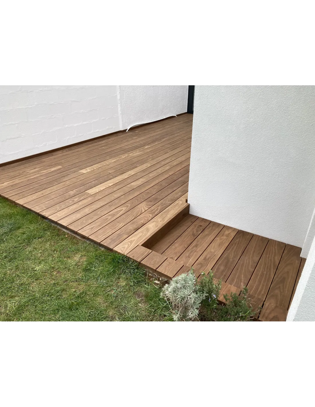 Geef uw terras een hoogwaardige afwerking met onze Thermowood Essen houten terrasplanken, te bevestigen met schroeven en voorzien van een glad oppervlak. Deze planken, gemaakt van thermisch behandeld Europees essenhout, combineren duurzaamheid, esthetiek en milieuvriendelijkheid. Ideaal voor een elegante en duurzame buitenruimte.