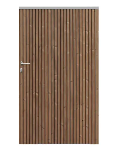 Deuren gemaakt van Thermowood vurenhout of ayous, beschikbaar in breedtes van 100 of 300 cm en een hoogte van 180 cm.