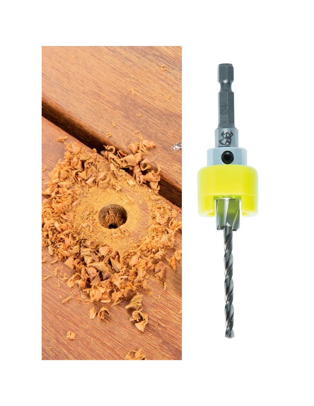 Boor voor het plaatsen van pluggen op terrasplanken. Doorsnede 3-10mm.
