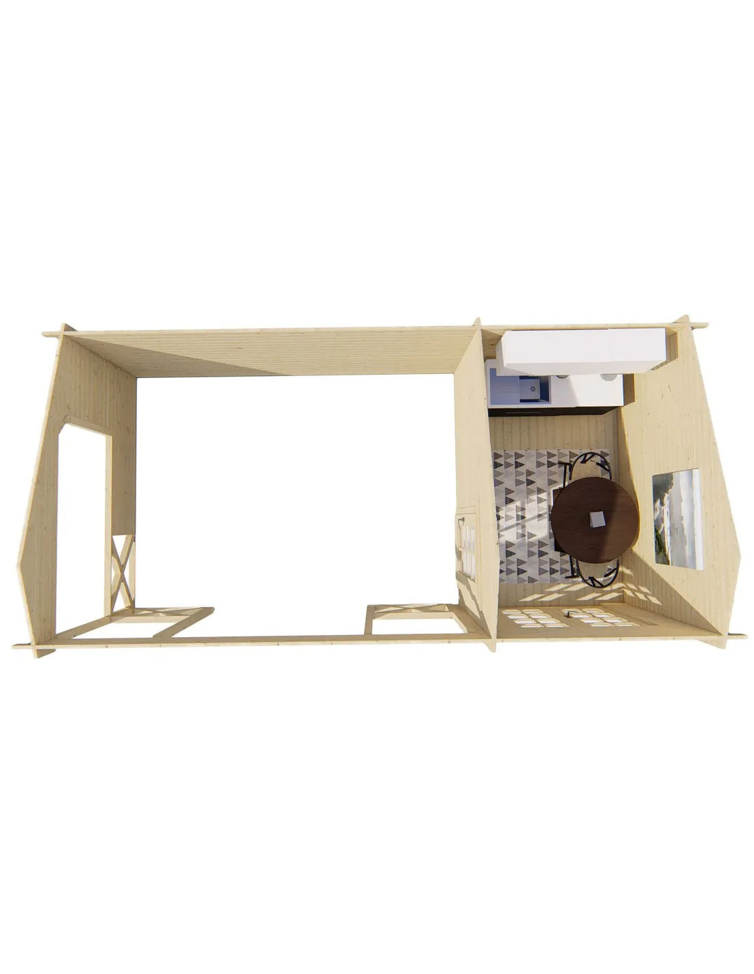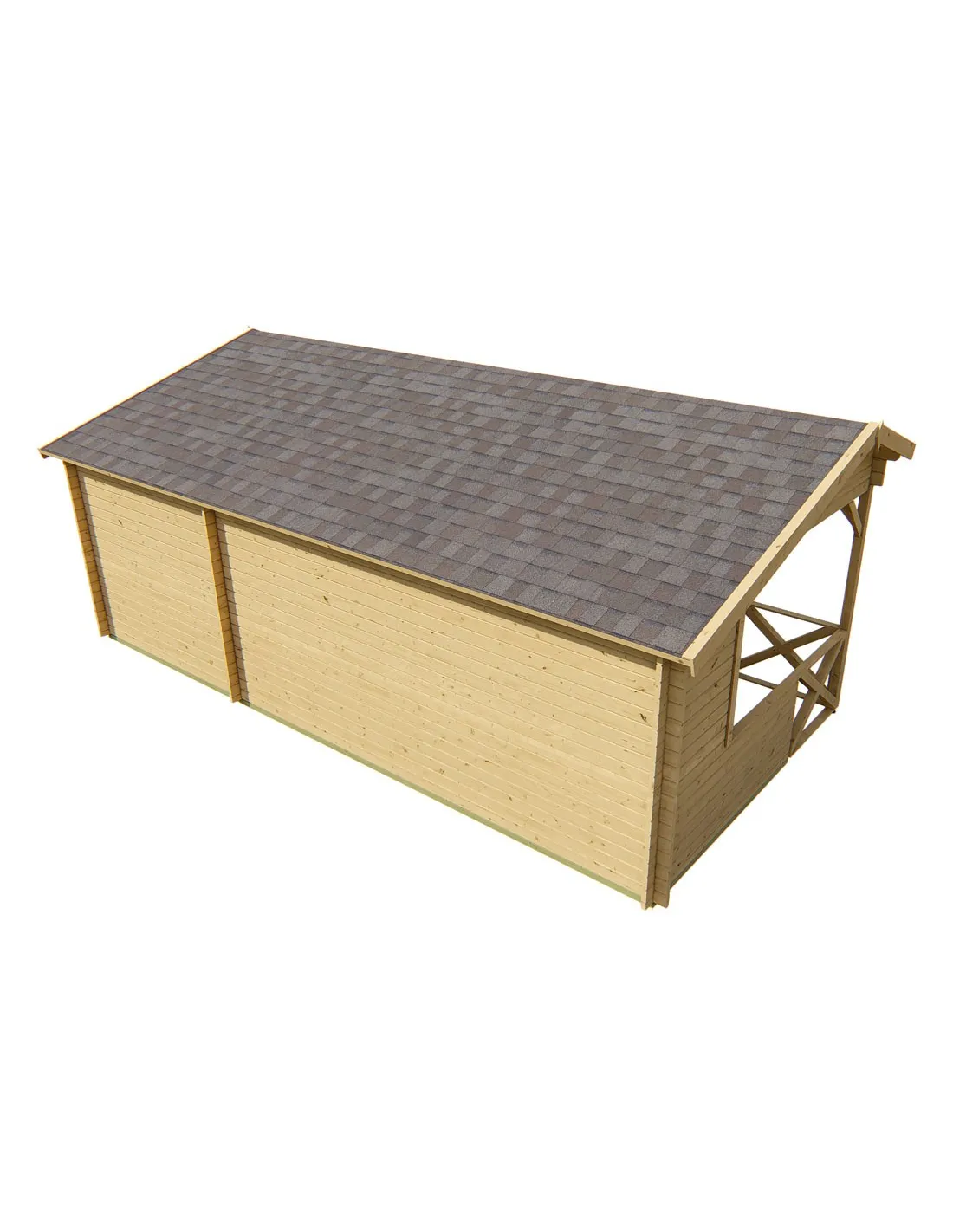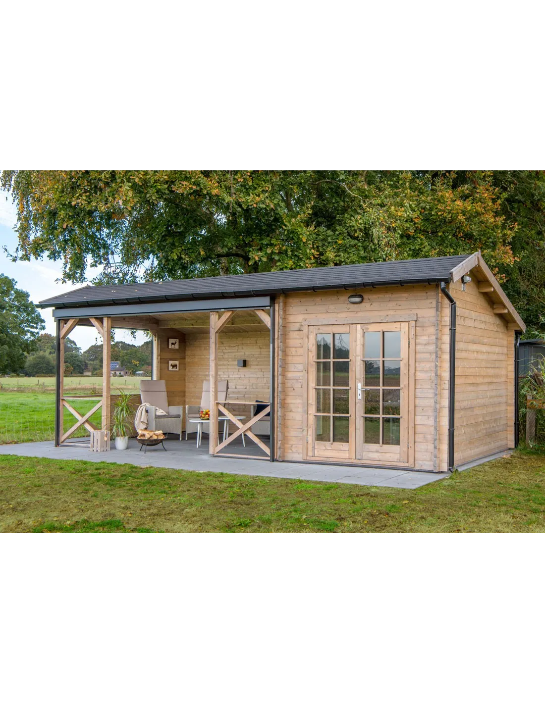 Het tuinchalet Zaventem is een premium tuinhuis dat esthetiek en functionaliteit combineert. Het bestaat uit een ruime hut en een luifel met balustrades en biedt een ideale plek om een loungeset, een ontspanningshoek of zelfs een buitenspa te installeren. Dankzij de robuuste structuur en het open ontwerp past het perfect in elke stijl van buiteninrichting.