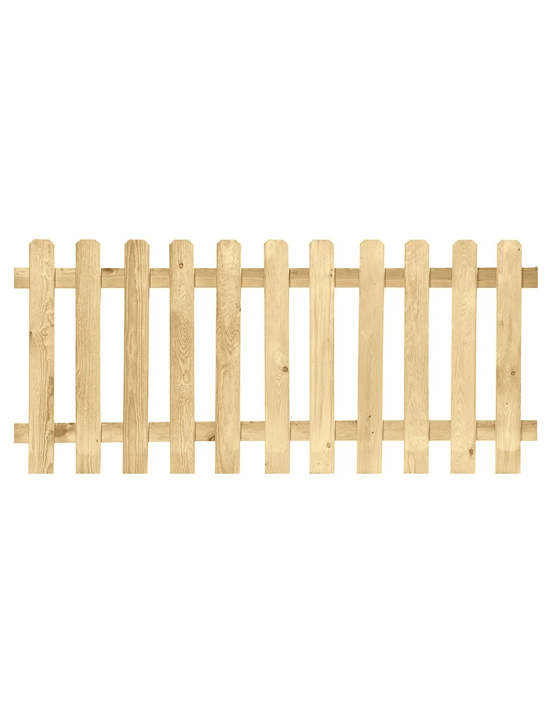 Tuinhoutafsluiting in geïmpregneerd dennenhout. Een breedte van 180 cm. Twee mogelijke hoogtes: 80 of 100 cm.
