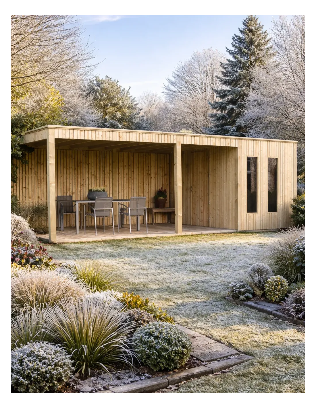 Ontdek de Cubo Premium tuinberging, de ideale oplossing om uw buitenruimte te verfraaien. Met de royale afmetingen van 816 x 318 cm combineert dit model een praktische opbergruimte met een groot overdekt terras, perfect om een loungeset, een spa of een eetruimte te installeren en beschut te blijven tegen slecht weer.