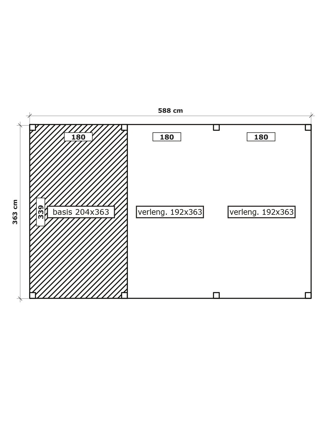 Afmetingen (L x D): 588 x 363 cm (5,88 m x 3,63 m)