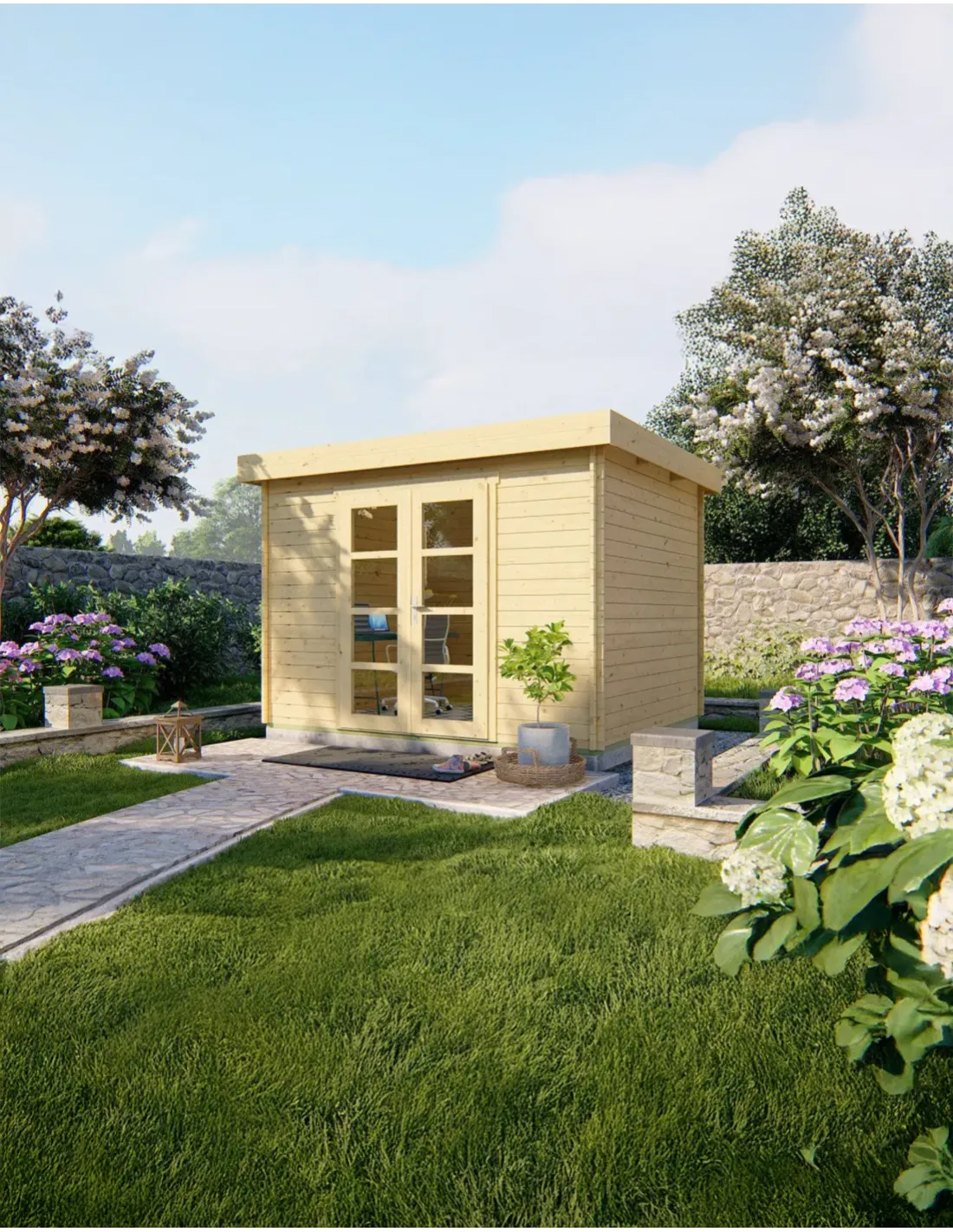 Ontdek het Houthem tuinhuis, de perfecte combinatie van hedendaagse stijl en functionaliteit om uw tuin te verfraaien. Dit tuinhuis van geschaafd vurenhout biedt een elegante uitbreiding van uw huis.