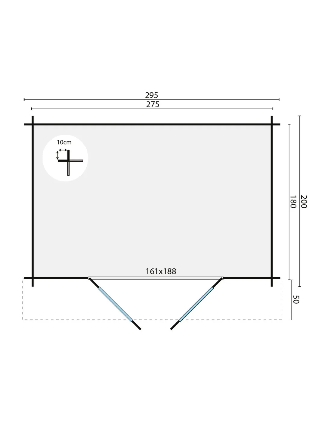 Buitenafmetingen: 295 cm (breedte) x 200 cm (diepte)
