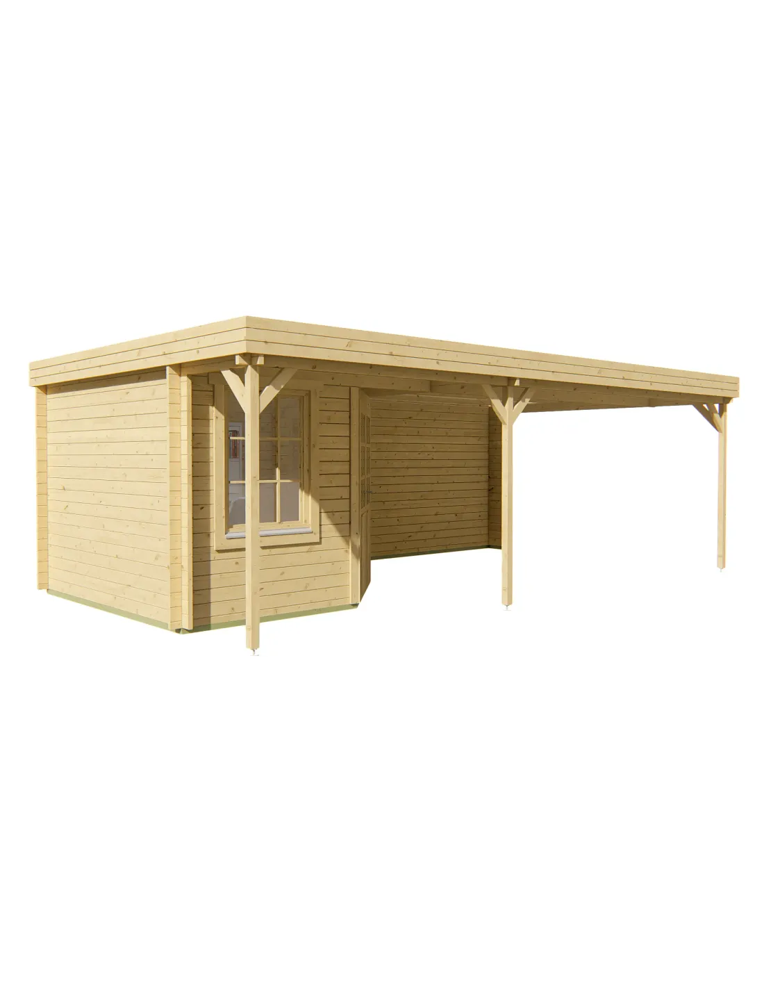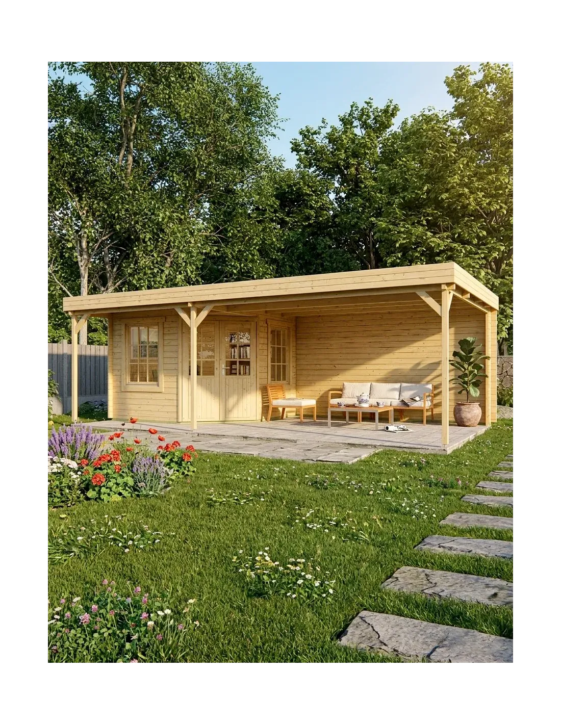 Wilt u uw tuin transformeren tot een echte leefruimte? Dit tuinhuis met grote overdekte ruimte is de ideale oplossing. Het combineert op slimme wijze een gesloten en veilige opbergruimte met een ruim overdekt terras. Dankzij het moderne design met plat dak integreert het elegant in alle buitenstijlen. Met een indrukwekkende totale oppervlakte van 24 m² geniet u optimaal van mooie dagen, in de schaduw en beschut tegen buien.