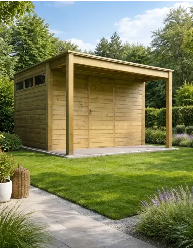 Gemaakt van Noord-Europees Rood Noordenhout, heeft dit tuinhuis een hoogwaardige groene autoclave-impregnatie ondergaan (Klasse 4). Dit proces garandeert een uitzonderlijke weerstand tegen slechte weersomstandigheden, vocht, schimmels en houtetende insecten. Zo investeert u in een duurzame buitenoplossing die minimaal onderhoud vereist.
