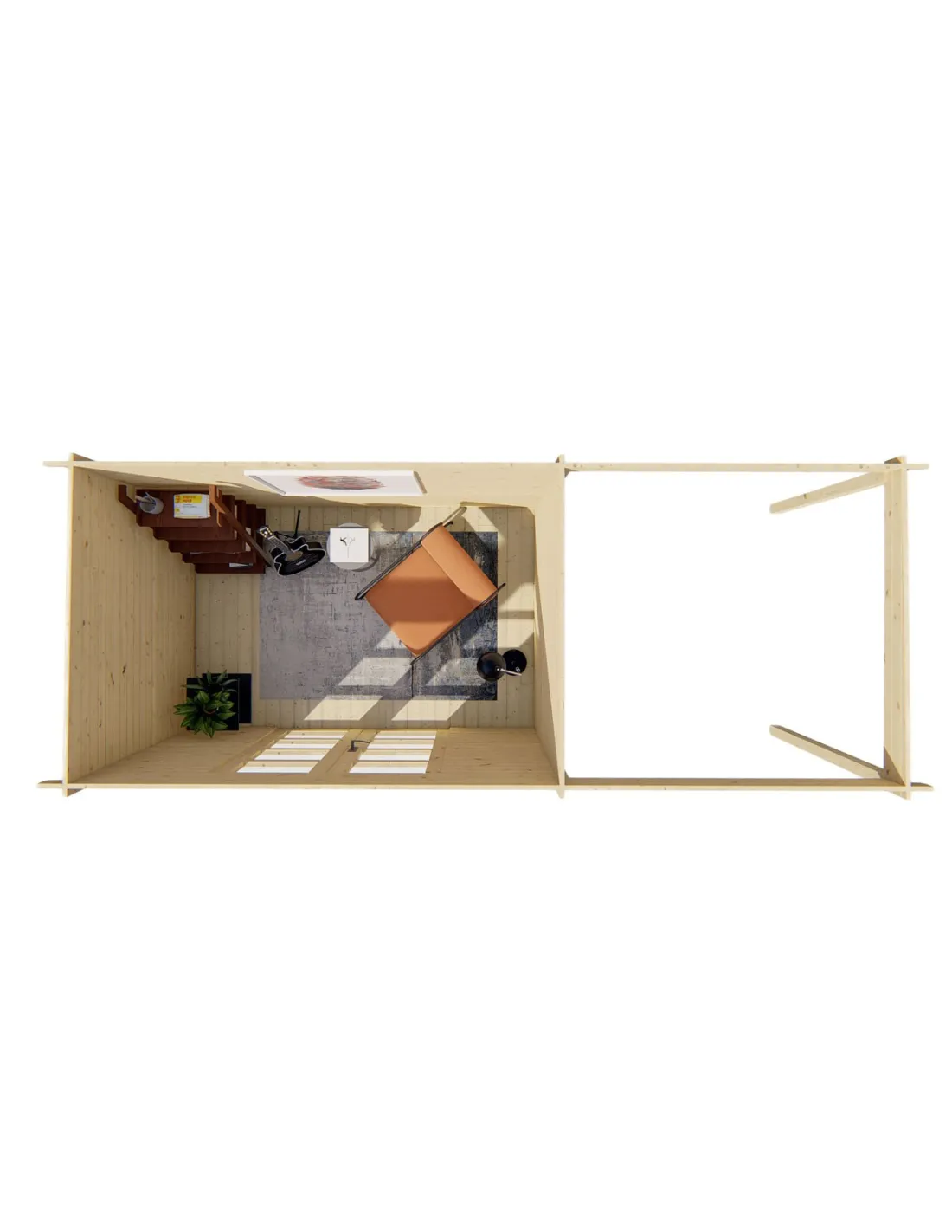 Moderne Tuinhuis met Plat Dak en Overkapping Rechts – 4,90 m x 2,00 m