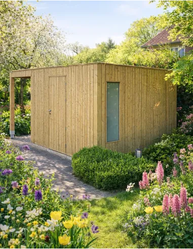 Dit model is vervaardigd uit Noord-Europees Rood Noordenhout, een houtsoort bekend om zijn grote stevigheid. Voor volledige gemoedsrust tegen weersinvloeden, vocht en insecten, is het hout behandeld met een groen autoclave-impregnering van Klasse 4 (C4). Wat betreft afwerking is het platte dak voorzien van een EPDM-membraan, een ultrabestendig en volledig waterdicht materiaal. Bovendien is er een regenwatergoot bij inbegrepen om regenwater optimaal af te voeren.