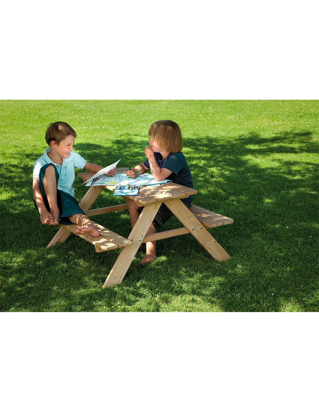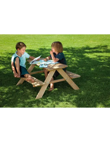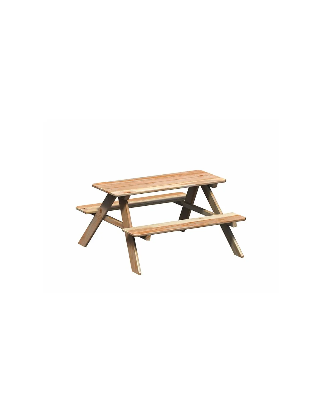 De lichtgewicht picknicktafel voor kinderen is in Europees larikshout. Door de geschrankte plaatsing van de tafelpoten biedt hij ook bij éénzijdige belasting een hoge stabiliteit.