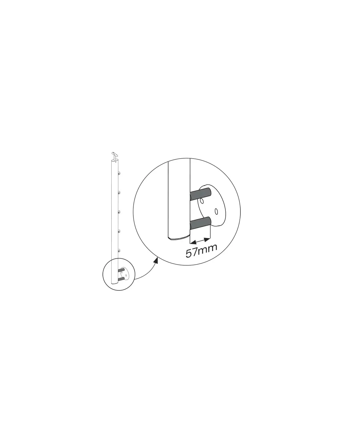 Afstandhouder voor de paal of zijsteun, voegt een dikte van 27 mm toe om aan de muur te bevestigen in geval van uitstekende treden.