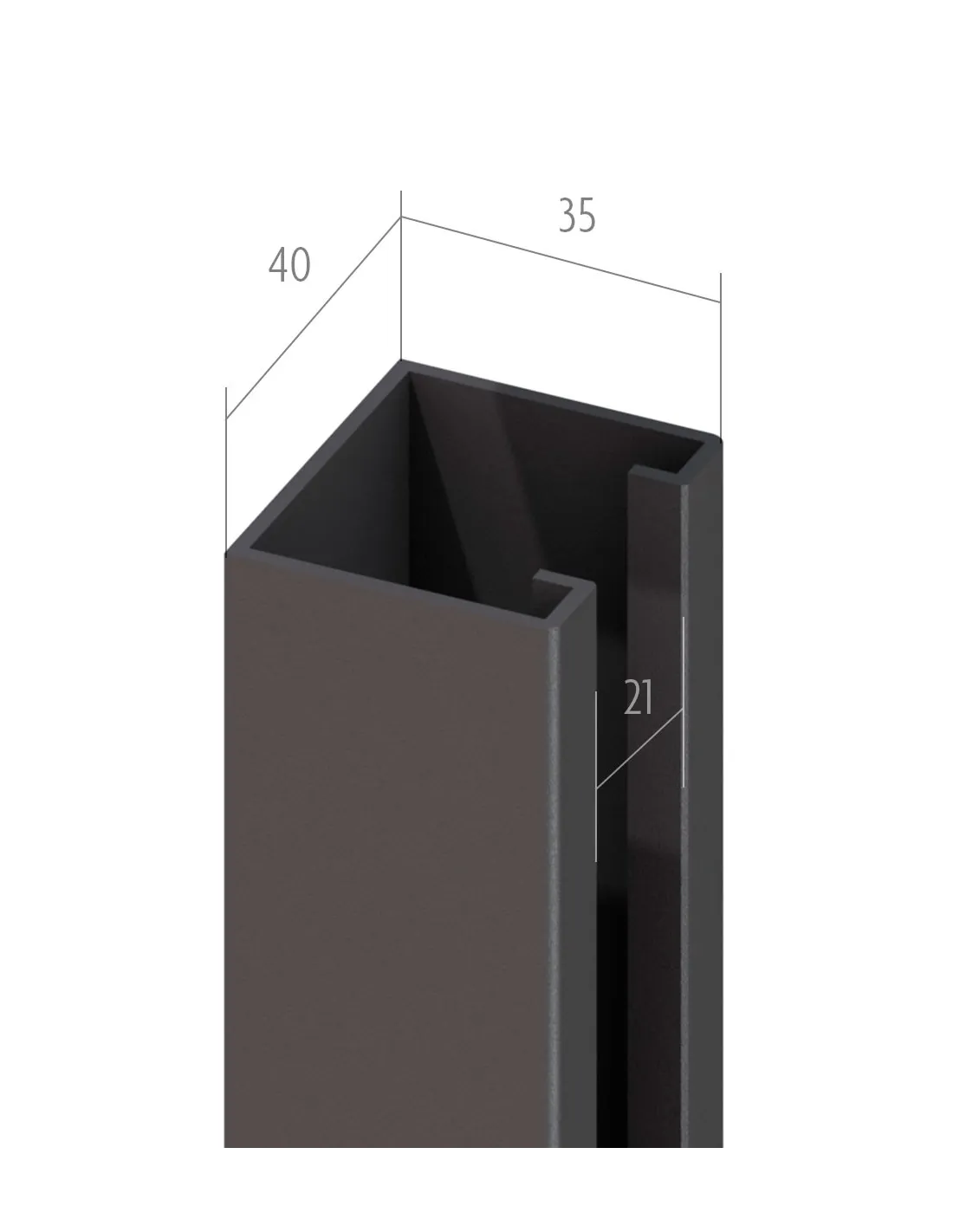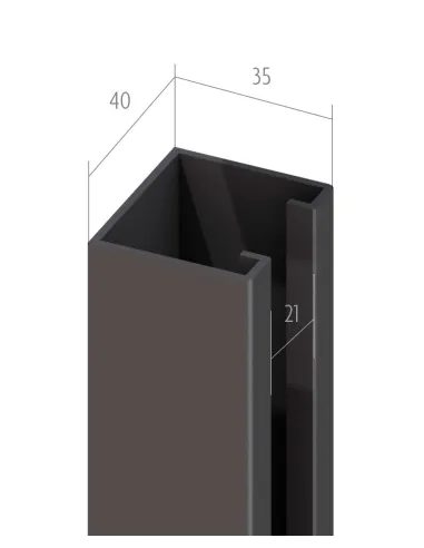 Profiel U (3,5 x 4 cm) voor het bevestigen van panelen in houtcomposiet of aluminium rechtstreeks op een muur, een andere paal, aan de zijkanten van een carport of op poortpalen. Beschikbaar in 3 lengtes: 105, 192 of 238 cm.