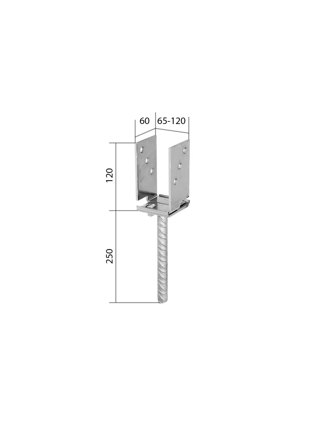 U-vormige palenanker met verstelbare breedte om in beton te plaatsen.