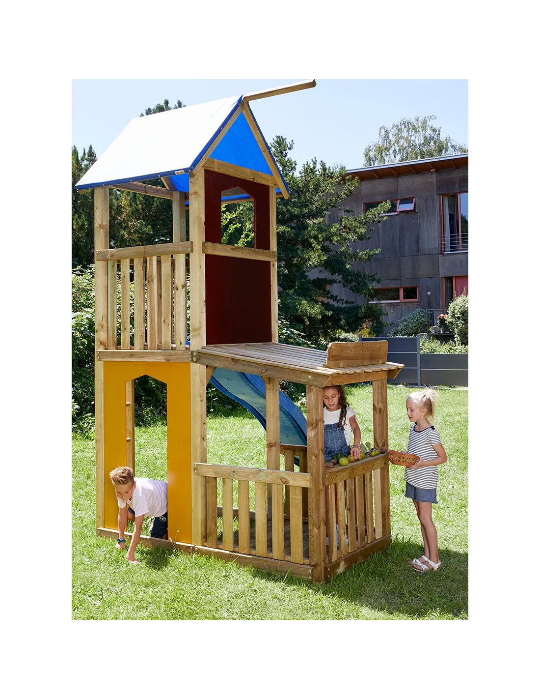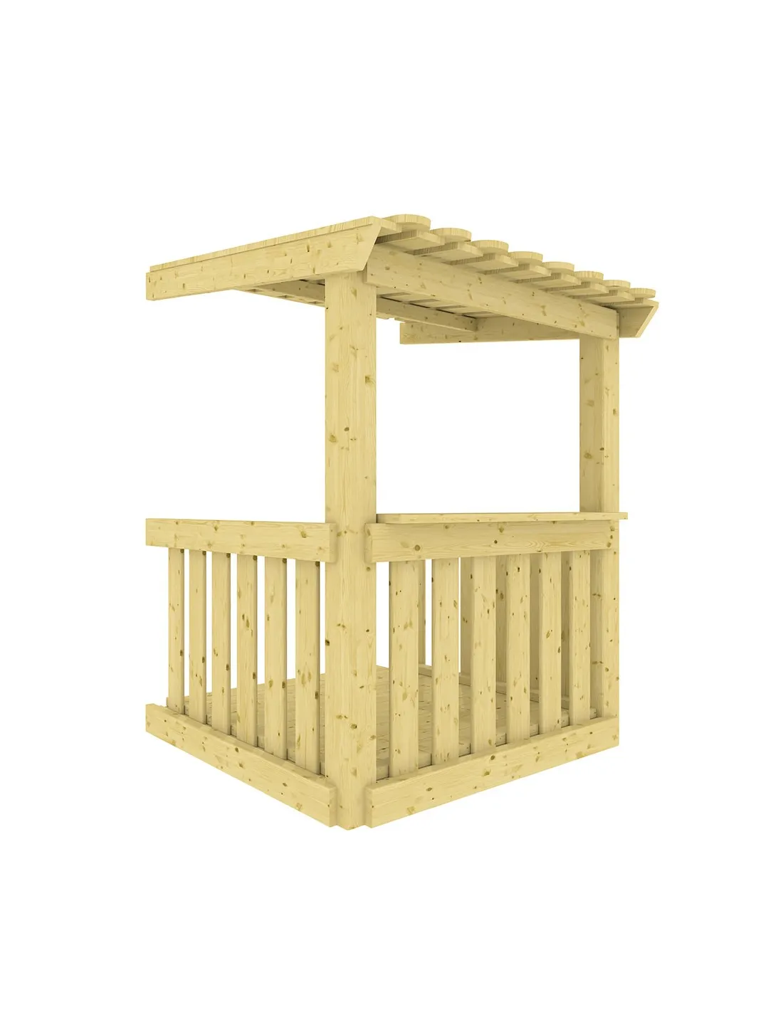 De grote veranda is geen balkon en is onderaan de toren gemonteerd. Het is ook mogelijk om twee veranda's te monteren, maar altijd alleen tegenover elkaar, niet over hoeken of tegen elkaar! Het dak van de grote veranda mag niet als balkon worden gebruikt.