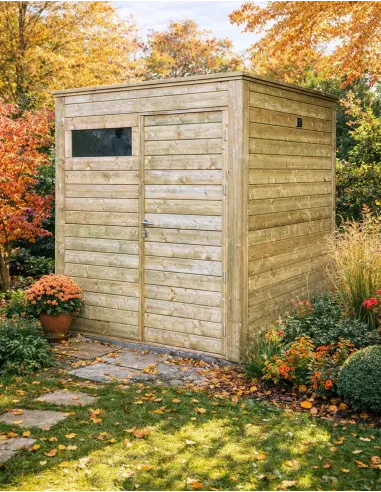 Combineer modern design en robuustheid met dit vierkante tuinhuis met zijn strakke stijl. Ideaal voor kleine tuinen of als stijlvolle opbergruimte, herdefinieert dit tuinhuis van de Cubo-reeks de standaard van een tuinberging. Gemaakt van Noord-Europees Rood Noordenhout, garandeert het uitzonderlijke structurele stabiliteit en een lange levensduur.