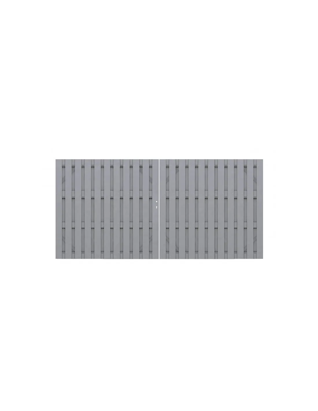 Optimaliseer uw entree met onze op maat gemaakte dubbele draaipoort van composiethout, perfect aangepast aan uw behoeften. Vervaardigd met een robuust frame van thermisch verzinkt metaal. Een profielcilinder (ref. 2551) is beschikbaar om de veiligheid van uw poort te verhogen.