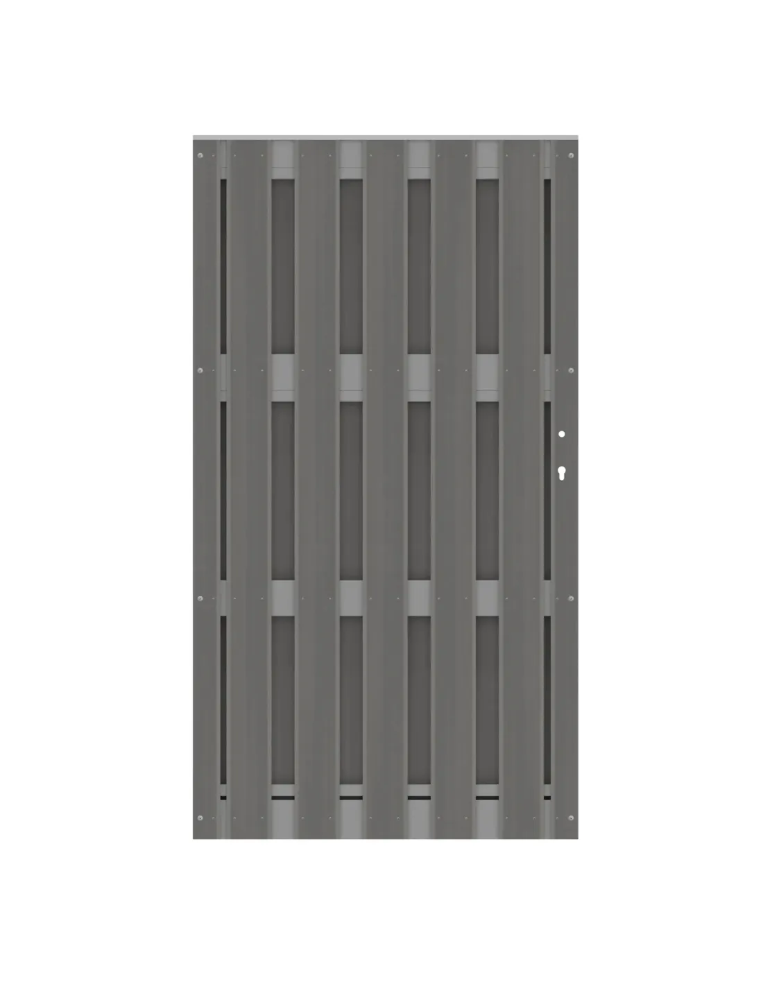 Wij begrijpen het belang van personalisatie; daarom is onze leveringsset compleet. Het bevat niet alleen de essentiële beslag, maar ook een geavanceerde inbouwslot met een dagschoot. Dit slot is ontworpen voor een flexibele montage, waardoor u de keuze hebt tussen een DIN-links of DIN-rechts opening, afhankelijk van uw specifieke behoeften. Bovendien wordt een stijlvol aluminium afwerkingsprofiel meegeleverd om de verticale profielen tegen weersinvloeden te beschermen, waardoor de levensduur van uw poort wordt verlengd.