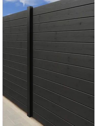 Voor extra stabiliteit en om de panelen perfect horizontaal te houden kan discreet een bevestigingsschroef worden toegevoegd. Met onze zwart, gegroefde en tong-en-groef panelen combineert uw houten omheining veiligheid, stevigheid en een eigentijdse esthetiek.