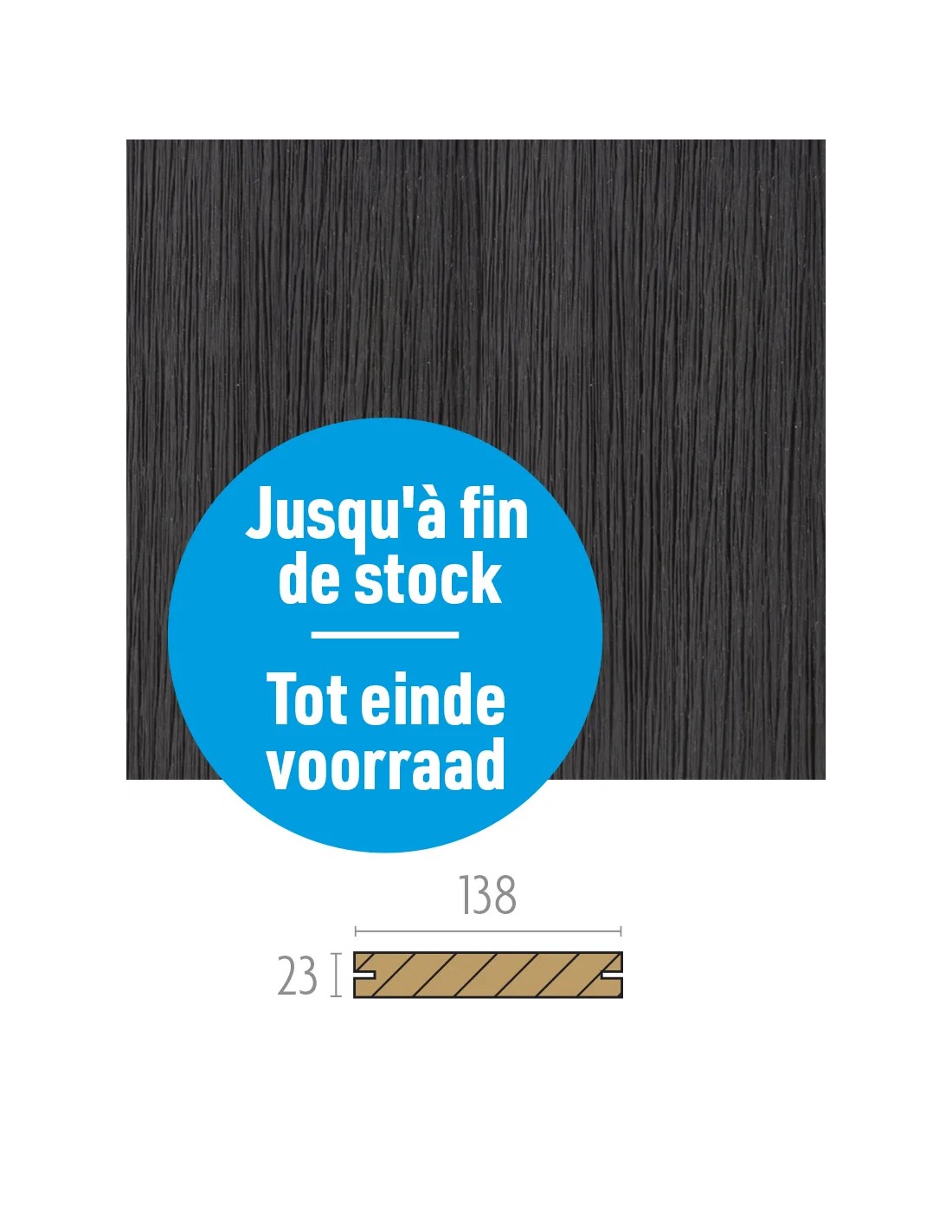 Vintage samengesteld hout latten hebben twee zijden; één licht gestructureerd door vezelige lijnen en in de houtrichting; de andere kant imiteert een beetje de structuur van een klassiek en natuurlijk hout. De planken moeten worden bevestigd met Xian-clips. De planken meten 23 x 138 mm over een lengte van 4 meter. Ze zijn verkrijgbaar in twee kleuren: zwart en Teck.